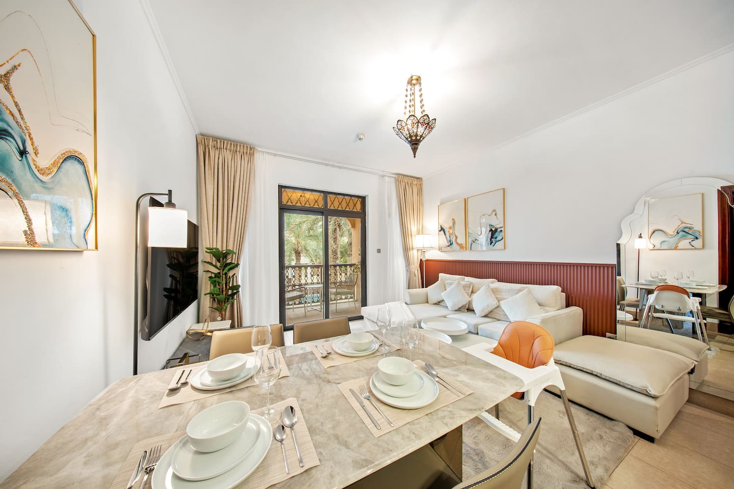 Unwind in our stylish 2-bedroom apartment in vibrant Downtown Dubai 🌆! Just steps from Dubai Mall , Burj Khalifa 🗼, and Dubai Opera 🎶. Enjoy relaxing moments on the balcony with stunning Burj Khalifa views ✨. Floor-to-ceiling windows fill the space with natural light 🌅 while keeping privacy. Off...
